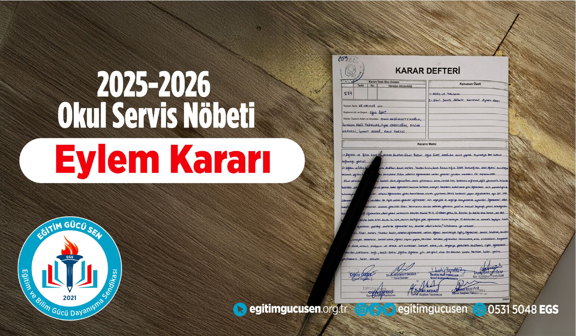 Sendikamız Genel Merkez Yönetim Kurulu, nöbetçi öğretmenlere verilen öğrenci servisleriyle ilgili; Öğrencileri servise bindirme, servisten indirme, emniyet kemerlerini kontrol etme, öğrenci sayımı yapma, servisleri bekleme, öğrencileri teslim alma, araç sürücüsünün belgelerini kontrol etme, aracın plakasını ve araca ait evrakları kontrol etme vb. angarya görevlerin sendikamız üyesi öğretmenler tarafından, isteklerine bağlı, 2025-2026 Eğitim öğretim yılı son günü olan 30 Haziran 2026 tarihine kadar yerine getirilmemesi kararı almıştır.